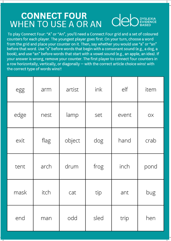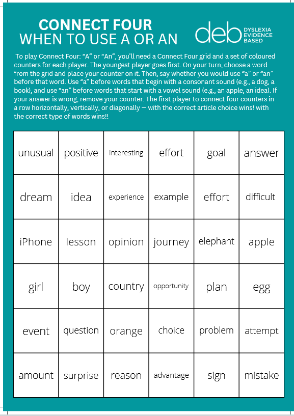 Noun vs Proper Noun Connect Four Premade and Blank Version